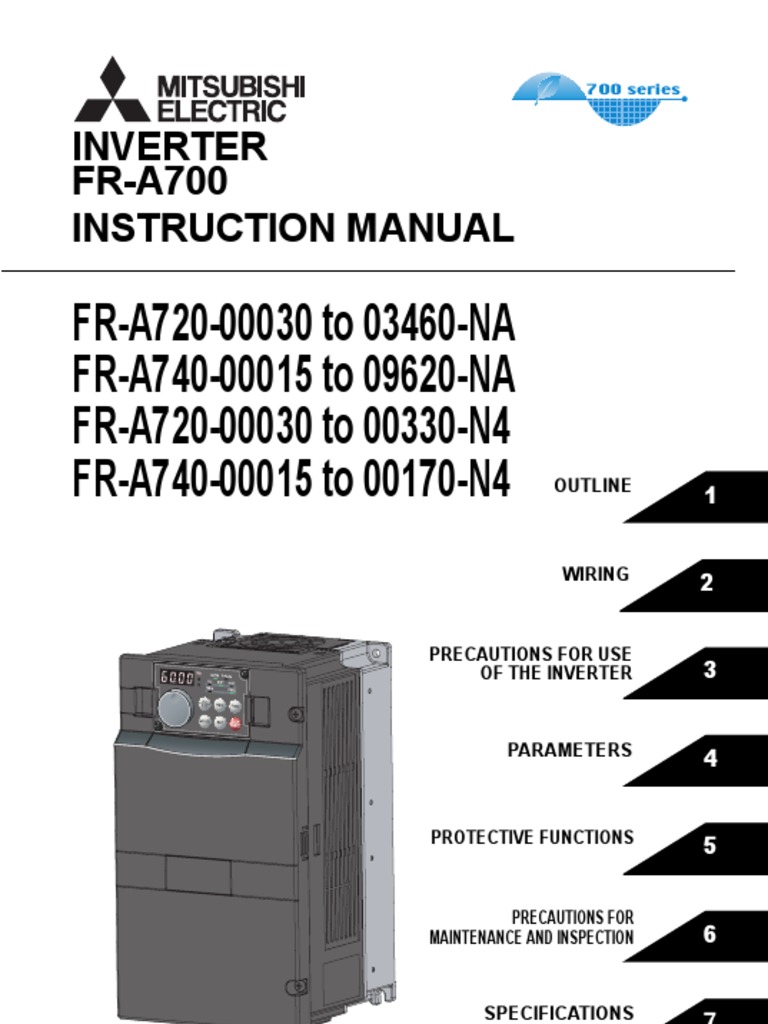 11+ pages manual inverter mitsubishi a700 1.6mb. Mitsubishi FR-A700 Manuals User Guides User Manuals Guides and Specifications for your Mitsubishi FR-A700 Inverter Inverter Drive. Manual Instruction manual. The A series VFD is the top of the line in Mitsubishi VFD family. Check also: a700 and understand more manual guide in manual inverter mitsubishi a700 Thank you for choosing this Mitsubishi Electric Inverter plug-in option.